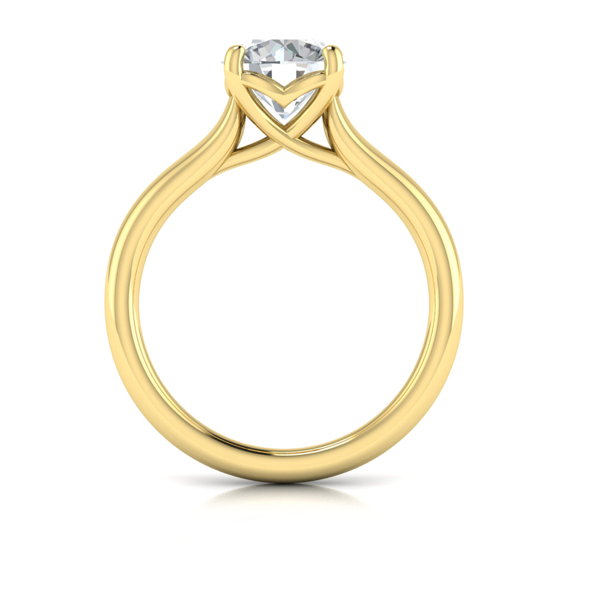 Capture the essence of your singular love story with this beautiful classic solitaire engagement ring. The cathedral setting gracefully elevates the round center diamond, a symbol of your romantic journey together. Vlora's signature V-shaped setting ensures brilliant light dances from every angle. This solitaire engagement ring is a testament to timeless love, echoing the beauty of two hearts becoming one. Let its radiant simplicity mark the beginning of your forever.