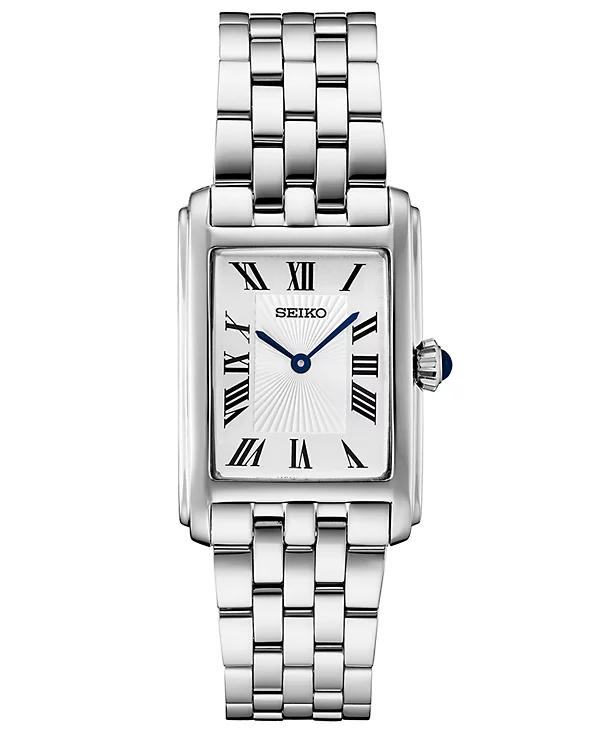 Effortlessly elegant, endlessly wearable — this Seiko women’s watch brings classic sophistication into the modern moment. The sleek rectangular case and polished silver-tone bracelet create a refined silhouette that transitions seamlessly from moment to moment.